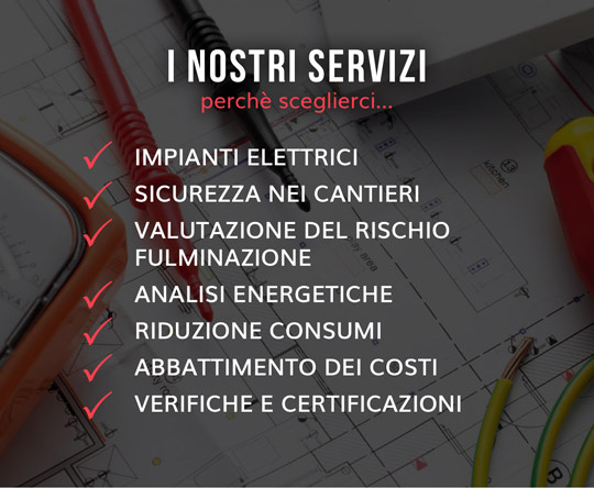 Lo Studio Sampieri ha un’esperienza ventennale nella Progettazione di Impianti Elettrici e nella Sicurezza nei Cantieri, con specializzazioni riconosciute nel campo della “Valutazione del rischio di fulminazione” e delle “Analisi Energetiche”.